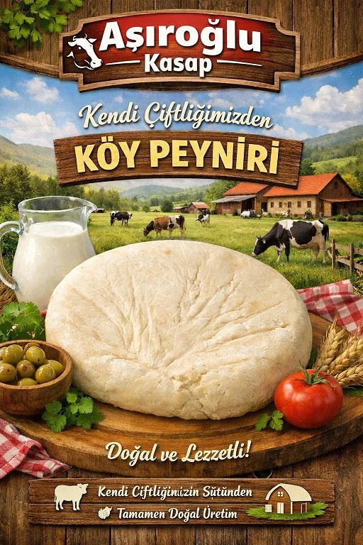 Doğallığı üretimin her aşamasında ön planda tutan Aş-Et Aşıroğlu Kasap, sadece et ve et ürünleriyle değil, kendi çiftliğinin sütünden üretilen köy peyniri ile de dikkat çekiyor. Tamamen doğal yöntemlerle hazırlanan köy peyniri, katkı maddesi içermeyen yapısıyla sağlıklı ve güvenilir bir lezzet olarak vatandaşların beğenisine sunuluyor. “Doğallığı çiftliğimizden, lezzeti sofranıza” anlayışıyla üretilen köy peyniri, kahvaltı sofralarının vazgeçilmezleri arasında yer almaya hazırlanıyor.