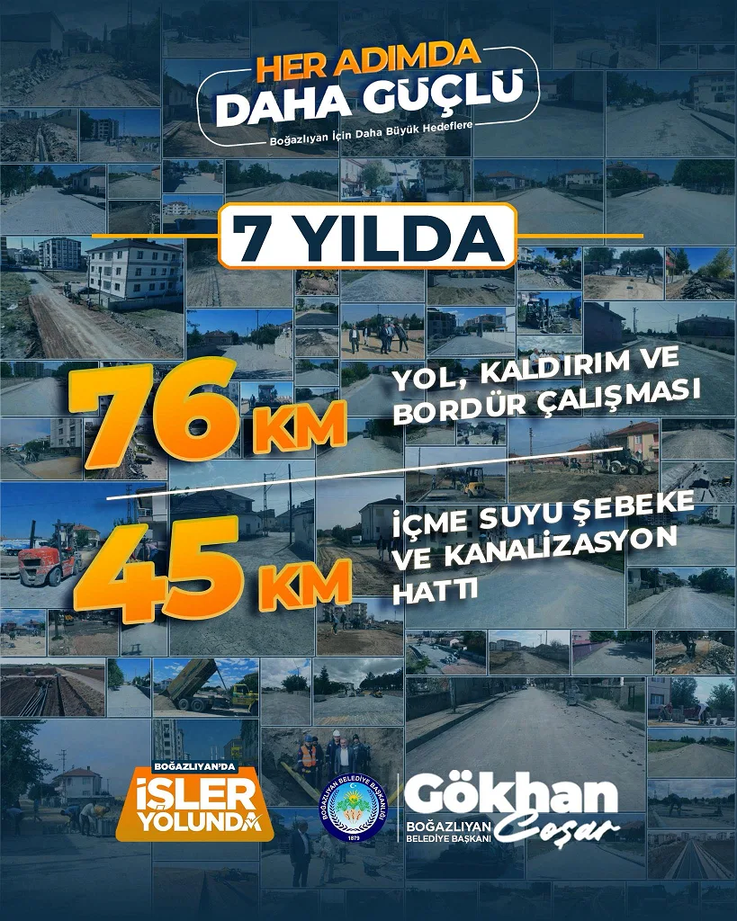 Boğazlıyan Belediye Başkanı Gökhan Coşar, 7 yılda ilçede yol, altyapı ve çevre düzenlemeleri başta olmak üzere birçok alanda önemli hizmetlerin hayata geçirildiğini açıkladı.