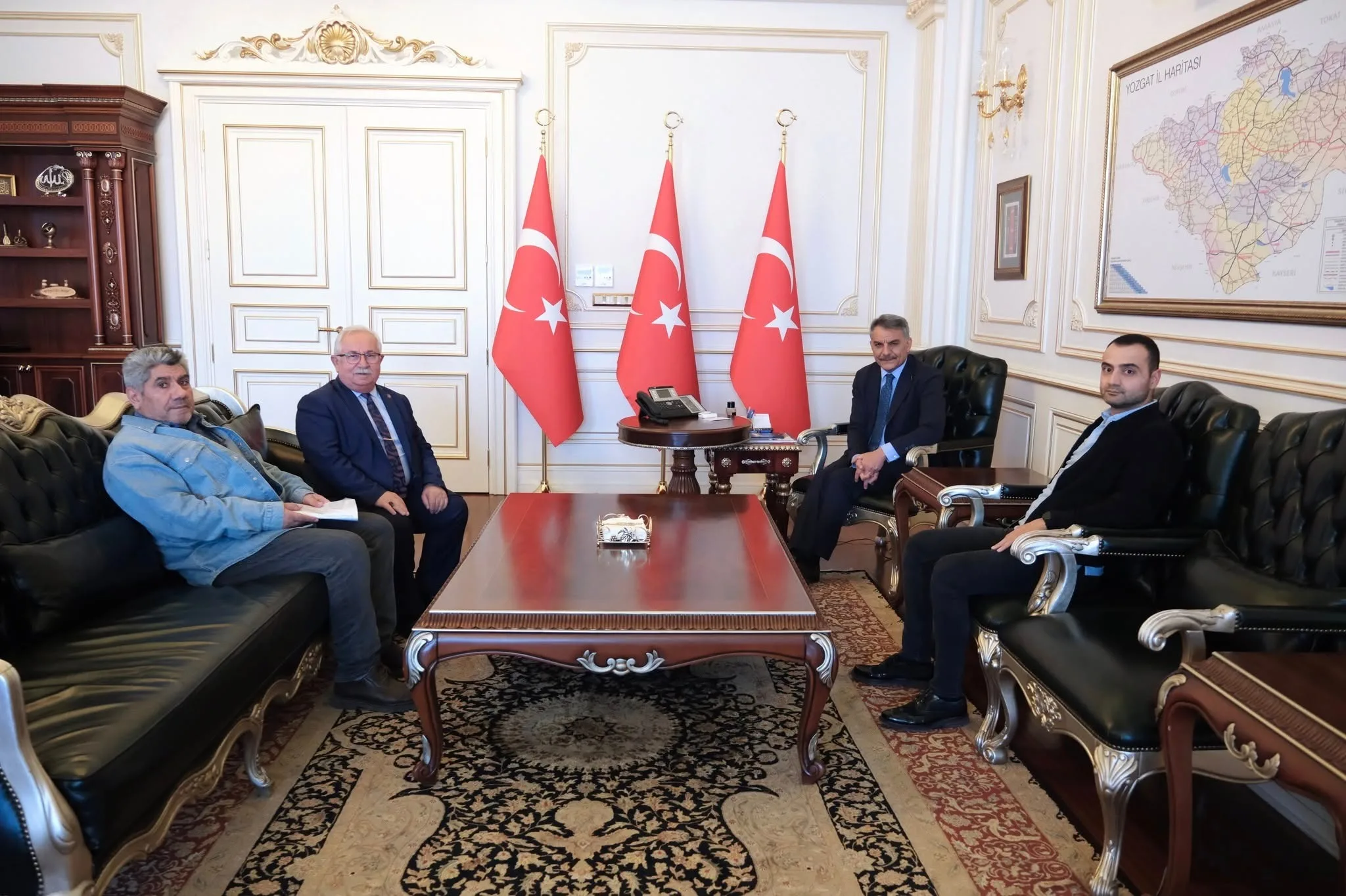 Yozgat İl Genel Meclisi Başkanı Adnan Ünal ve Yozgat Damızlık Koyun ve Keçi Yetiştiricileri Birliği Başkanı Nevzat Yıldırım, Yozgat Valisi Mehmet Ali Özkan’ı makamında ziyaret etti.