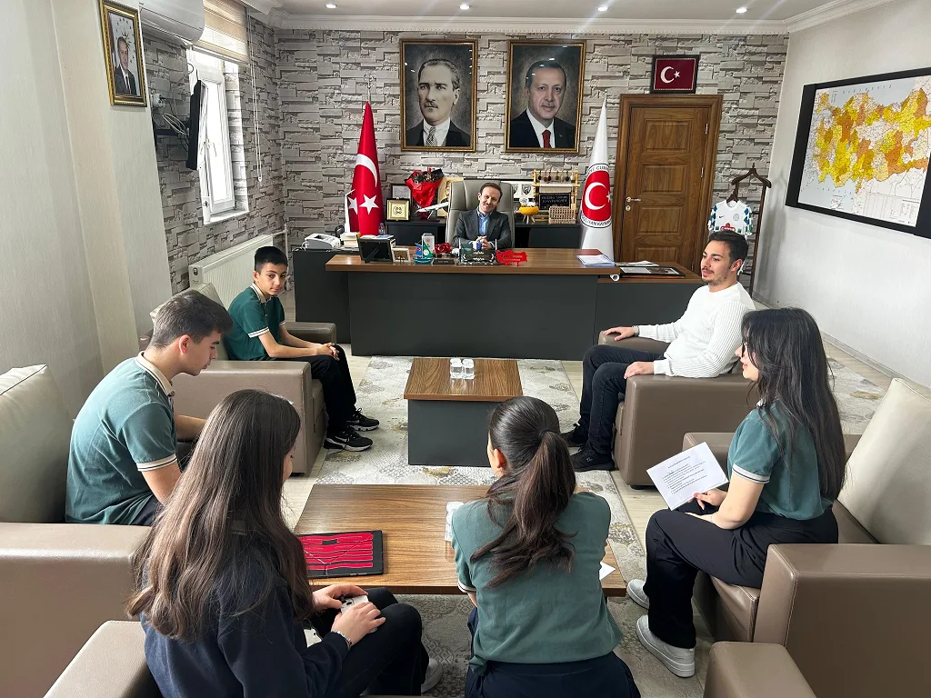 Milli Şehit Kaymakam Kemal Bey Fen Lisesi Biyoloji Öğretmeni Ali Can Yüksek ile 10. sınıf öğrencileri Yaren Canatan, Ali Osman Canlı, Badegül Eser, Talha Bingül ve Zeynep Sena Sarpdağ, su ayak izi kavramı üzerine farkındalık oluşturmak amacıyla Kaymakam Aydın Yanık ile röportaj gerçekleştirdi.