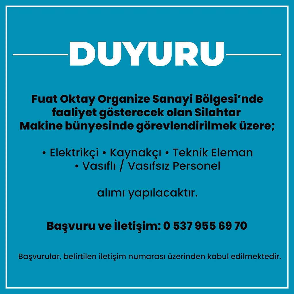 Silahtar Makine yetkilileri, nitelikli personelin iş başvurularının beklenildiğini ifade ederek, iş arayan vatandaşları belirtilen numara üzerinden başvuruda bulunmaya davet etti.